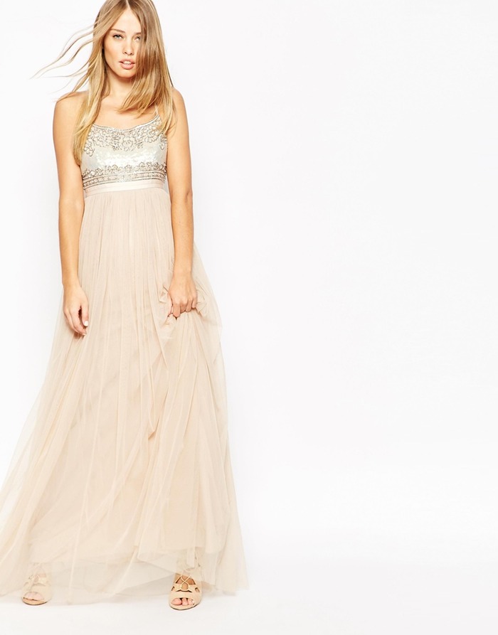 “Meitenes šogad īpaši meklē miesas krāsas un metāliskos toņus, vairāk nekā jebkuru citu krāsu. Šī dizainera “Needle&Thread” kleita lieliski atbilst šīm vēlmēm, tādēļ nav brīnums, ka to visi pērk,” raksta vecākā modes redaktore “Lyst” vietnē.