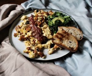 Šis ēdiens būs ideāla izvēle brokastīm, jo olas un Jāņu siers veido lielisku garšas kombināciju un sniedz dienas iesākumam nepieciešamo enerģiju