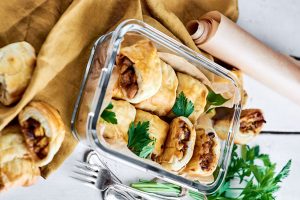 Cūkgaļas-ābolu pīrādziņi ar pētersīļiem un salviju
