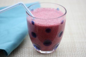 Visas smūtija sastāvdaļas sablenderē, lej skaistā glāzē un bauda.