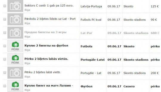 Lai arī biļetes uz piektdien, 9. jūnijā, paredzēto Latvijas un Portugāles Pasaules kausa kvalifikācijas spēli “Skonto” stadionā ir pilnībā izpārdotas, sludinājumu portālos tos joprojām var iegādāties – tiesa par astronomiskām summām, kas sasniedz vairākus simtus eiro.