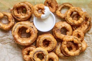 Sīpolu gredzeni alus mīklā