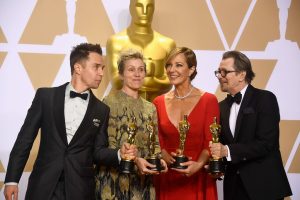 Savukārt labāko aktieru godā tika celti Frānsisa Makdormana par vientuļās mātes Mildredas lomu filmā “Trīs paziņojumi pie Ebingas, Misūri štatā” un Gerijs Oldmens par britu premjerminstra Vinstona Čērčila lomu filmā “Tumšākā stunda”.