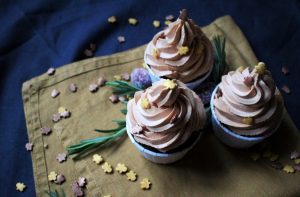 5) Mazo kēksu formās saliec papīra formiņas. Samaisi un sadali mīklu pa formiņām tā, lai būtu aizpildītas 2/3 papīra formas. Liec cepeškrāsnī un cep 25-30 minūtes līdz kēksiņi kļuvuši zeltaini. Izņem kēksus no krāsns un atstāj tos vēl 5 minūtēm pannā, tad izņem no pannas un pilnībā atdzesē.