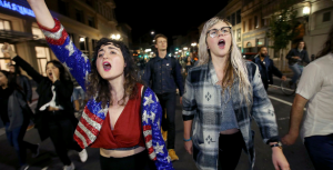 Losandželosā simtiem pusaudžu un pilngadīgu jauniešu pulcējās pie mērijas, skandējot “Not my president!” (“Nav mans prezidents!”).