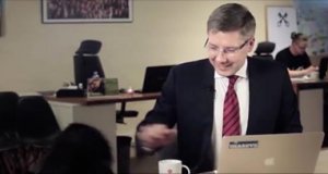 Internetā popularitāti iemantojis video, kurā Rīgas mēra Nila Ušakova videomateriāla veidošanu izjauc kaķa uznāciens.