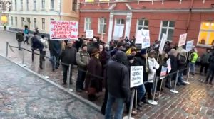 Tautas sapulces dalībnieku rokās – transparenti, kuros uzrakstīti ziņojumi par plānotajām bezkompromisa tiesiskuma uzvarām, un cerība uz atbildēm no ārvalstu vēstniecībām izsūtītajām vēstulēm. Stingrā solī Tautas sapulces dalībnieku pūli apstaigāja arī vairāki Jauno komunistu deputāti un to palīgi – bijušie slepenpolicisti. Viņi nodeva sapulces dalībniekiem kvēlu sveicienu no brālīgajiem Šveices konfederācijas komunistiem – b.Meroni un citiem.